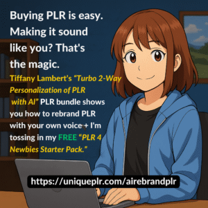 If you’ve ever stared at a PLR article and thought, “Ugh, where do I even start?” then you’ll love this. Tiffany Lambert created a PLR bundle called Turbo 2-Way Personalization of PLR with AI.